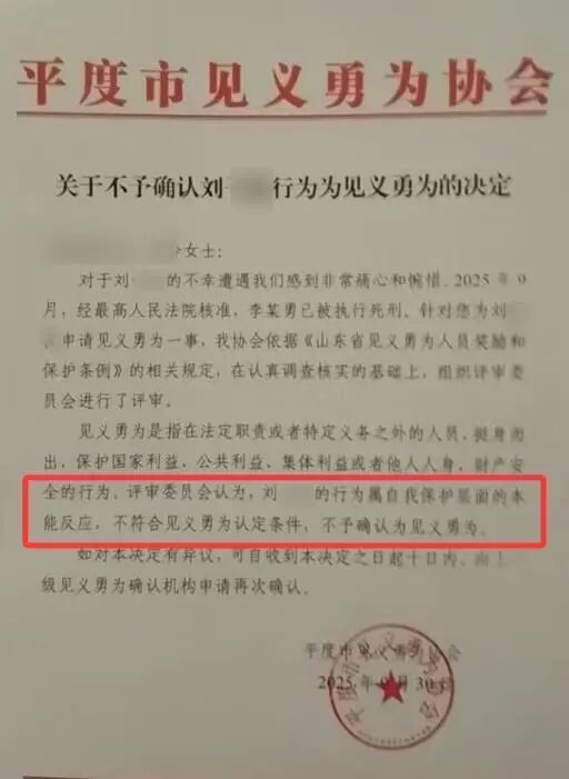10月2日,极目新闻记者从“青岛两名女幼师遇害案”受害者刘某某家属处获悉,今年9月,经最高法核准,该案罪犯李某勇已被执行死刑。而对于刘某某家属提出的申请见义勇为一事,属地见义勇为协会认为刘某某的行为属自我保护层面的本能反应,不予确认为见义勇为,对此,家属告诉极目新闻记者,他们将提出异议。